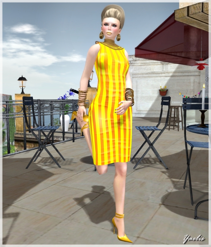Dress .:GD:. Neon Stripes Lemon/Orange Dress .:Glow Designs:. @ ..::Cosmopolitan Sale Room::..